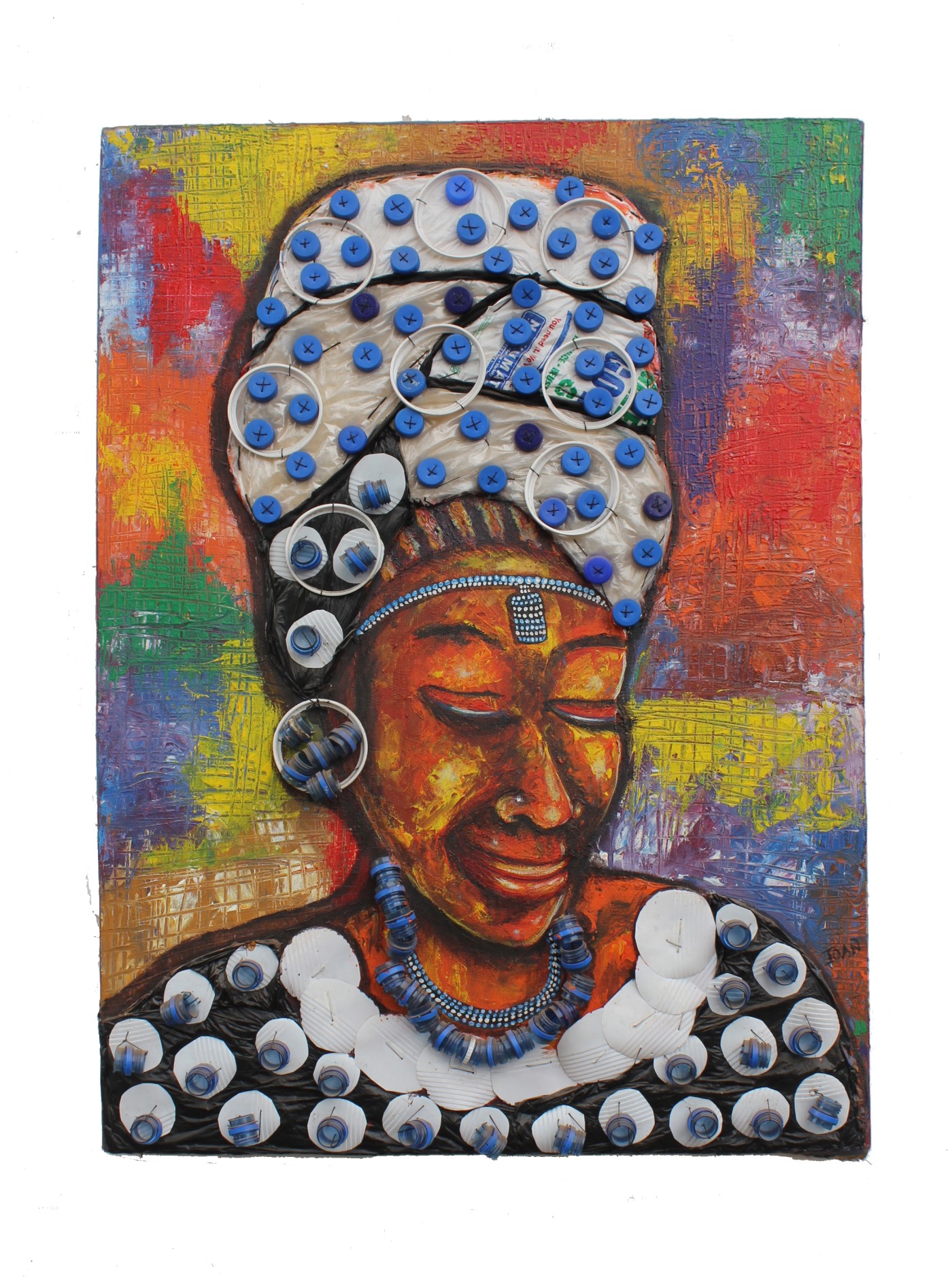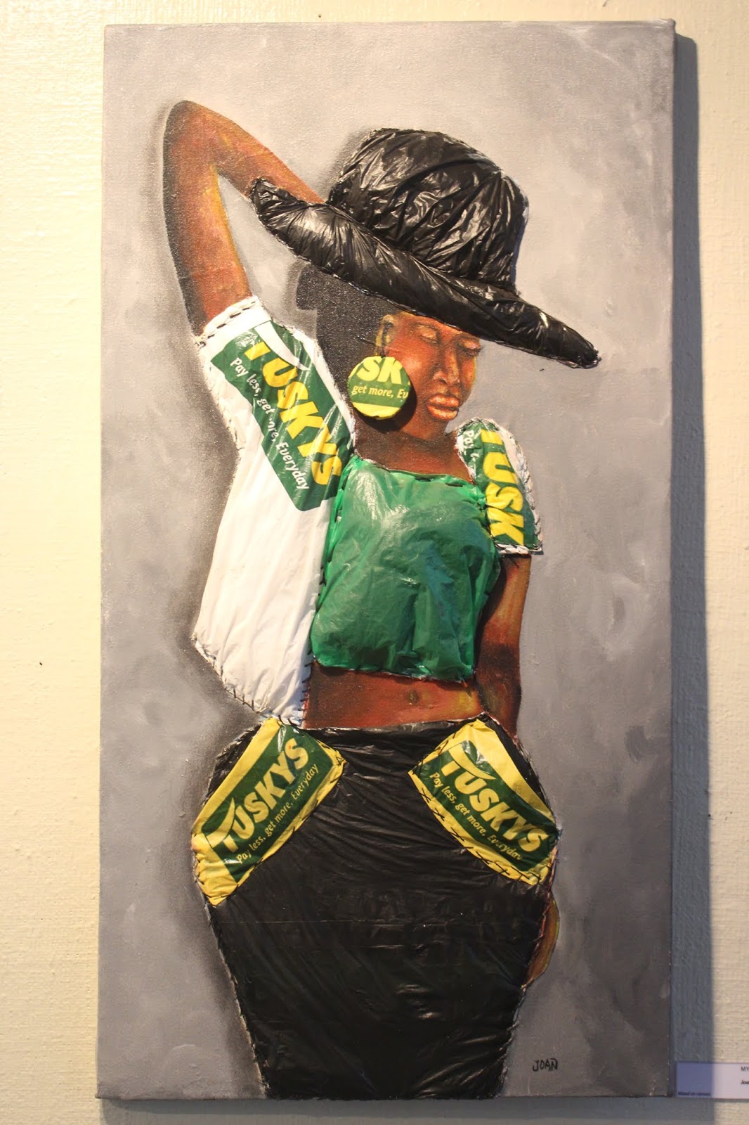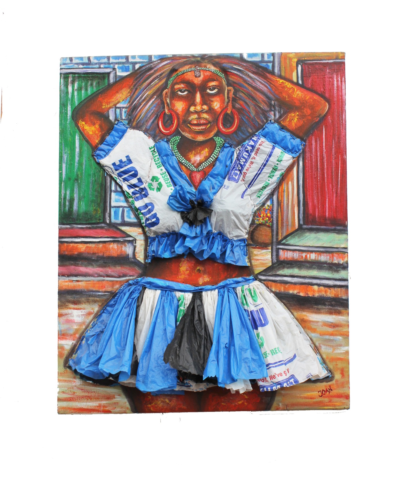Eventually, she felt the need to break out as an independent artist. She’d become a skilled painter and she wanted to continue her upcycling habit. The dumping sites in Baba Dogo were still as they were, and she realized the same habit was ‘practised’ in areas such as Kariobangi and Kibra. Refusing to remain passive, Joan affirmed to make a change. Her art spoke for itself with more and more pieces integrating junk. The work she produced was exhibited in several places such as The British Institute of East Africa and The Railway Museum. She was doing her little thing and it made her jovial.