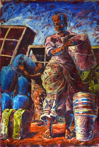Today, Patrick is celebrated around Kenya, not just as an artist, but as a teacher. He enjoys the process of guiding beginners into the world of sketches and paint. The process starts, often, with the understanding of anatomy, playing with shapes and, in time, understanding volumes. He is, undeniably, a busy man, but one dedicated to spread his artistic knowledge. He is an active art teacher of the children at the Kenyatta Hospital Cancer Ward, students at various public schools and community centers dedicated to art.