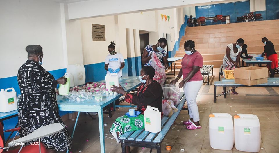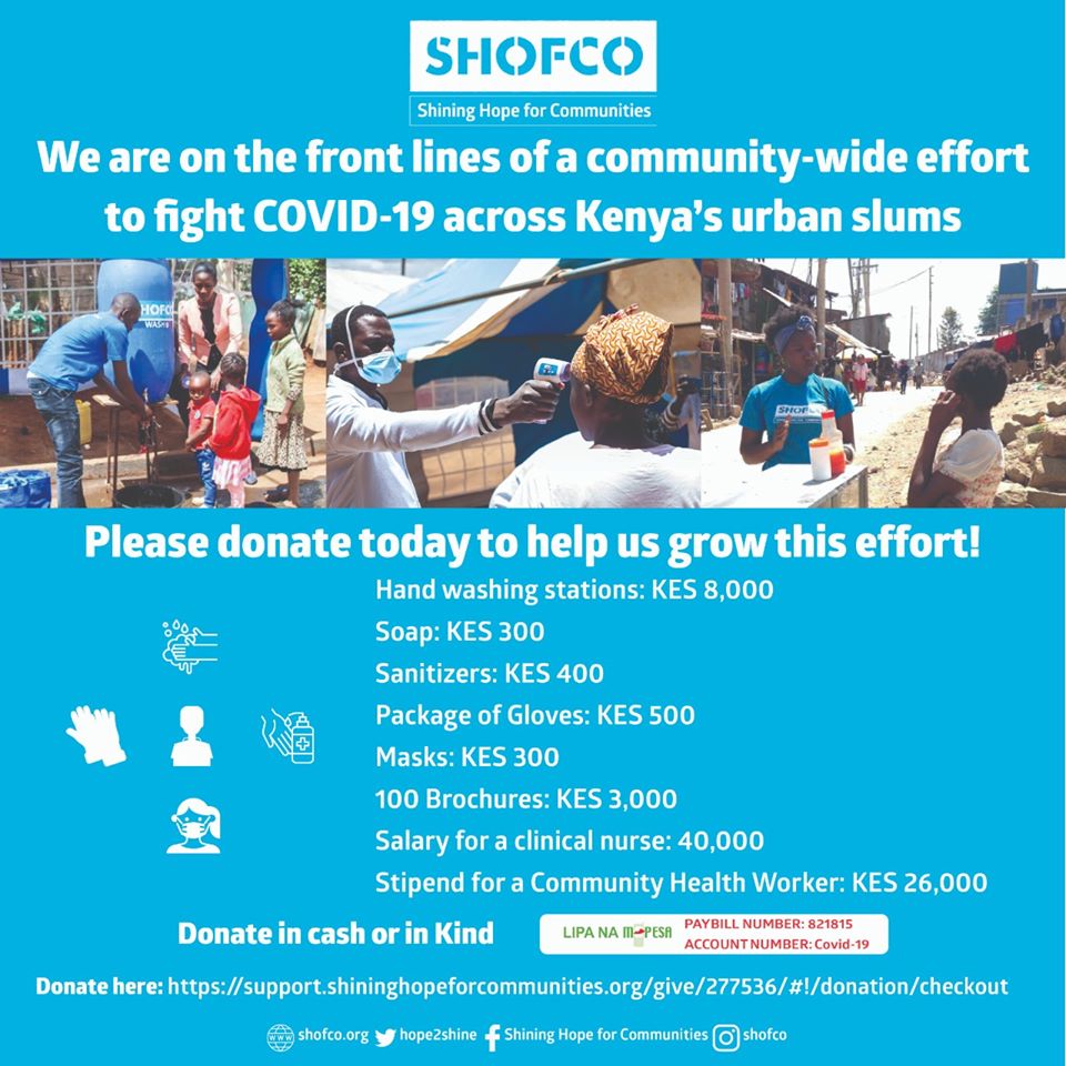 Rosemary’s new normal now revolves around helping Shofco keep the virus out of Kibera. Every morning, she heads over to Shofco’s offices to work on the preparation of hand sanitizer. Once the sanitizer is ready, she steps in to pack the liquid into containers which will be distributed to the various hand washing stations erected all over Kibera and other urban slums.