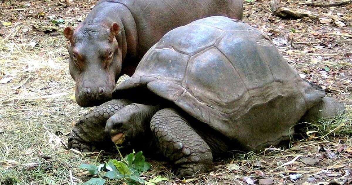 News of the stranded hippo reached Dr. Paula Kahumbu, the chief environmentalist, at a Mombasa-based animal sanctuary called Haller Park. She immediately left for Malindi to get the hippo and bring him back to the sanctuary. By the time Owen arrived at Haller Park, he was tired, scared, and alone. Immediately he was placed into an enclosure, Owen looked around for somewhere to hide. He caught sight of another creature in the enclosure with him. It had a similar colour, shape and size as his mother. He ran to it and trailed behind it as baby hippos do around their mothers. The creature was a 130-year-old tortoise called Mzee. Mzee was taken aback and hissed at Owen to scare him away. Owen backed away at this reaction, but not for long. Within a few days, his persistence won Mzee over, and the giant Aldabra tortoise became Owen’s adoptive parent.