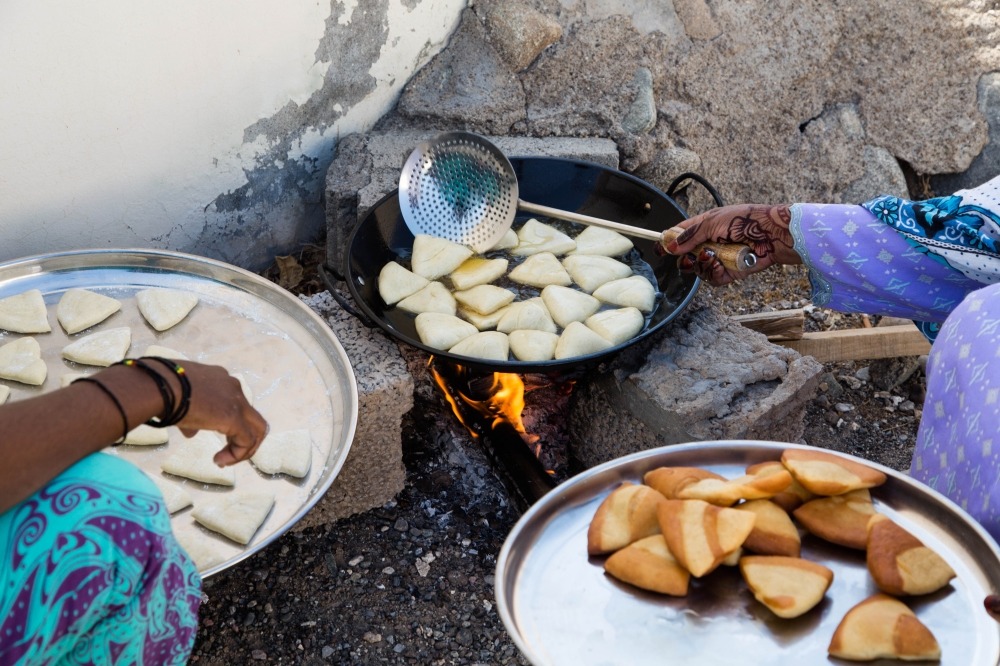 In another place, there is a jiko with hot coal and a bowl-shaped pan above it. The smell of hot oil draws you nearer to the deep-fried mandazi or cassava. But more often than this, you will find a man roasting maize with such skill and precision; you know that there is nothing quite as good as mahindi choma. When the crackle of the kernels win you over and you buy an entire cob, he asks if you’d like pili pili on it, and he takes a lemon, already out of its bitter juice, and dabs it in a tin with chilli powder and decorates the cob with red particles.